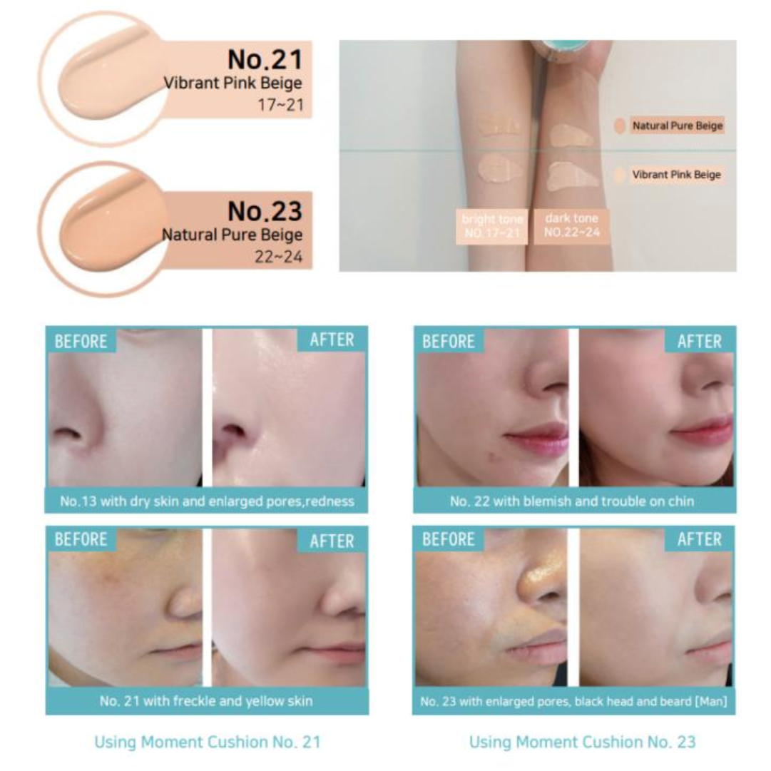 - This cushion comes in two colors : No.21 Vibrant Beige and No.23 Natural Beige that perfectly go well with all skin colors